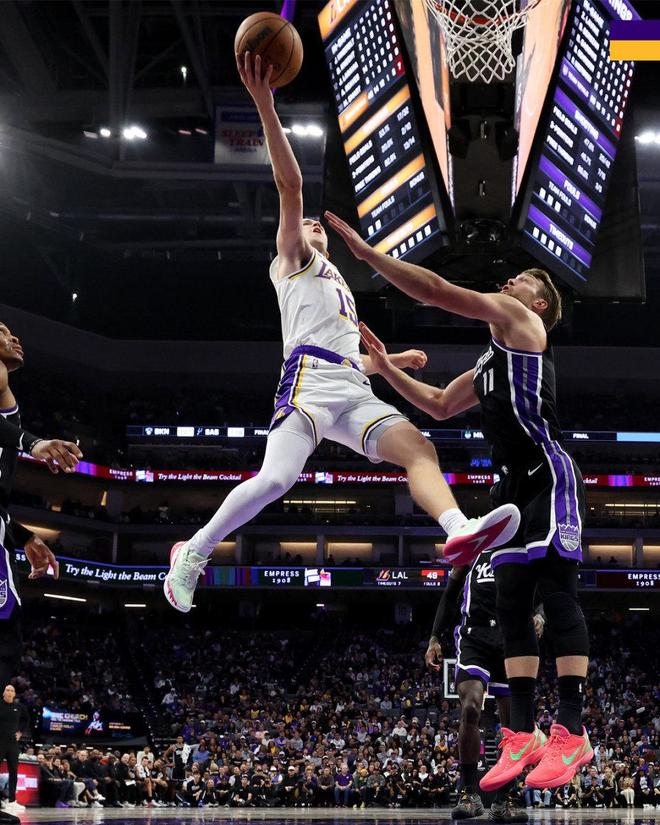 本场比赛湖人缺兵少将,首发变成文森特、里夫斯、斯玛特、八村和艾顿。国王上来率先进入状态,拉文三分命中,湖人则连续冲击拿分,随后更是占据场上主动,埃利斯三分命中止血,文森特三罚全中,里夫斯随后连续拿分,开始将分差拉开。拉文打成2+1止血,施罗德突破打进,可湖人又连续拿分,取得10分领先,国王连续拿分缩小分差,拉拉维亚三分命中,首节湖人36-27领先。